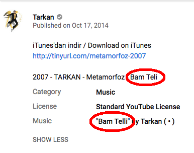 Тогда я лезу в iTunes, искать каталог альбомов, и там эту песню. У них написано - Bam Telli.