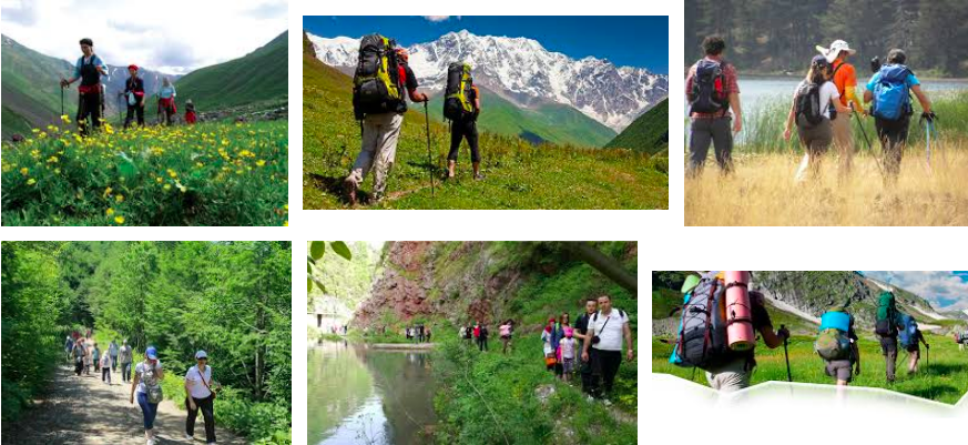 У нас это хайкинг называется. Люди с рюкзаками и с лыжными палками (или без) по горам-долинам гулять ходят. В русском уже есть слово для этого?