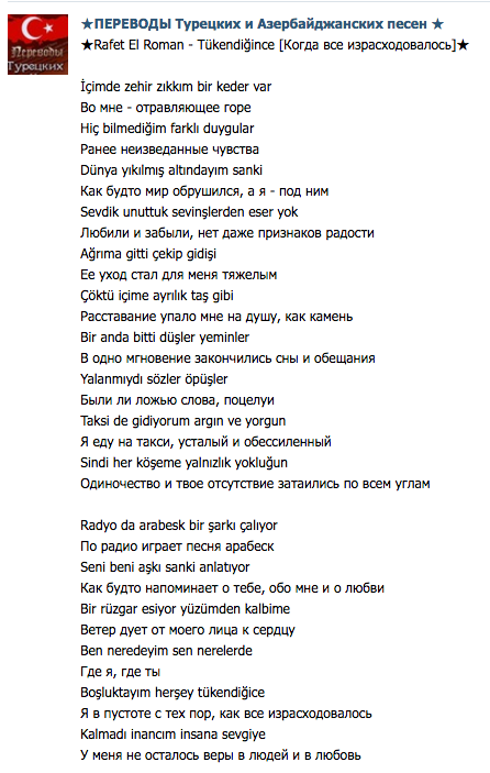 И на английский перевод от этого же автора - с теми же ошибками... И всё. Больше переводов нет. Но... Даже сами турки кое-где, когда дают слова этой песни, пишут титул TükendiğinDE. Какой бардак на планете, Боже мой!
