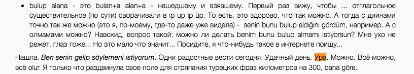 - çekip gidişi - это çekişi gidişi свернутое. Мы давно выяснили, что отглагольные штуки (даже существительные) можно на ıp заворачивать... Вот мне бы найти, где именно мы это выяснили... а как искать? Какое слово в поиск блога забивать? Никогда не угадаете... "Ура" надо искать. Я ж наверняка обрадовалась там, зная меня... Ну и вот, пожалуйста... çok tebrikler bulup alana из 201 урока.