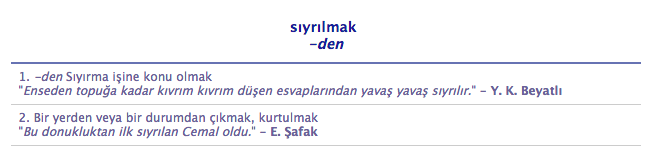 - Ура! первое реально новое слово с реально новым корнем. Sıyrılmak. Это возвратный от переходного sıyırmak - поцарапать/ободрать... Мне так кажется, у нас в русском нет одного точного эквивалента на все его значения.