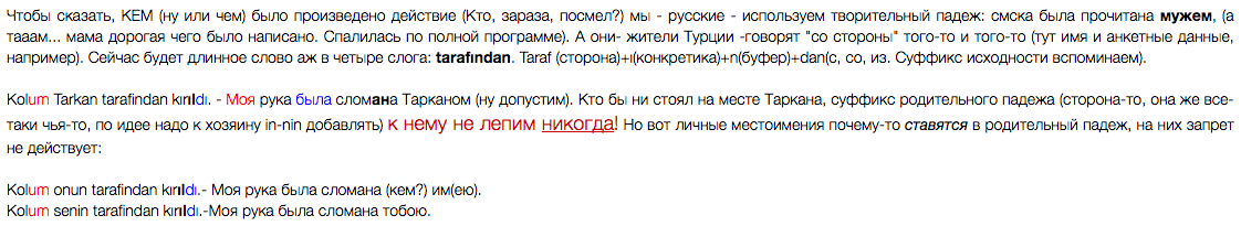 Щось в лисе сдохло, первый tarafından изо рта Тэтэ... Сейчас напьюсь... Ладно хоть не в песне... А то мне в научные статьи за ним ходить всё время приходилось. Ведь с Kuzu Kuzu клянусь направо и налево, что tarafından существует, а доказательств вам - ноль... Это при том, что все помнят, что ТТ сломал мне руку в 18 уроке... виртуально... для образовательных целей. Три-четыре правило, как мантру: "кто бы ни стоял на месте Таркана..."... дальше что?...