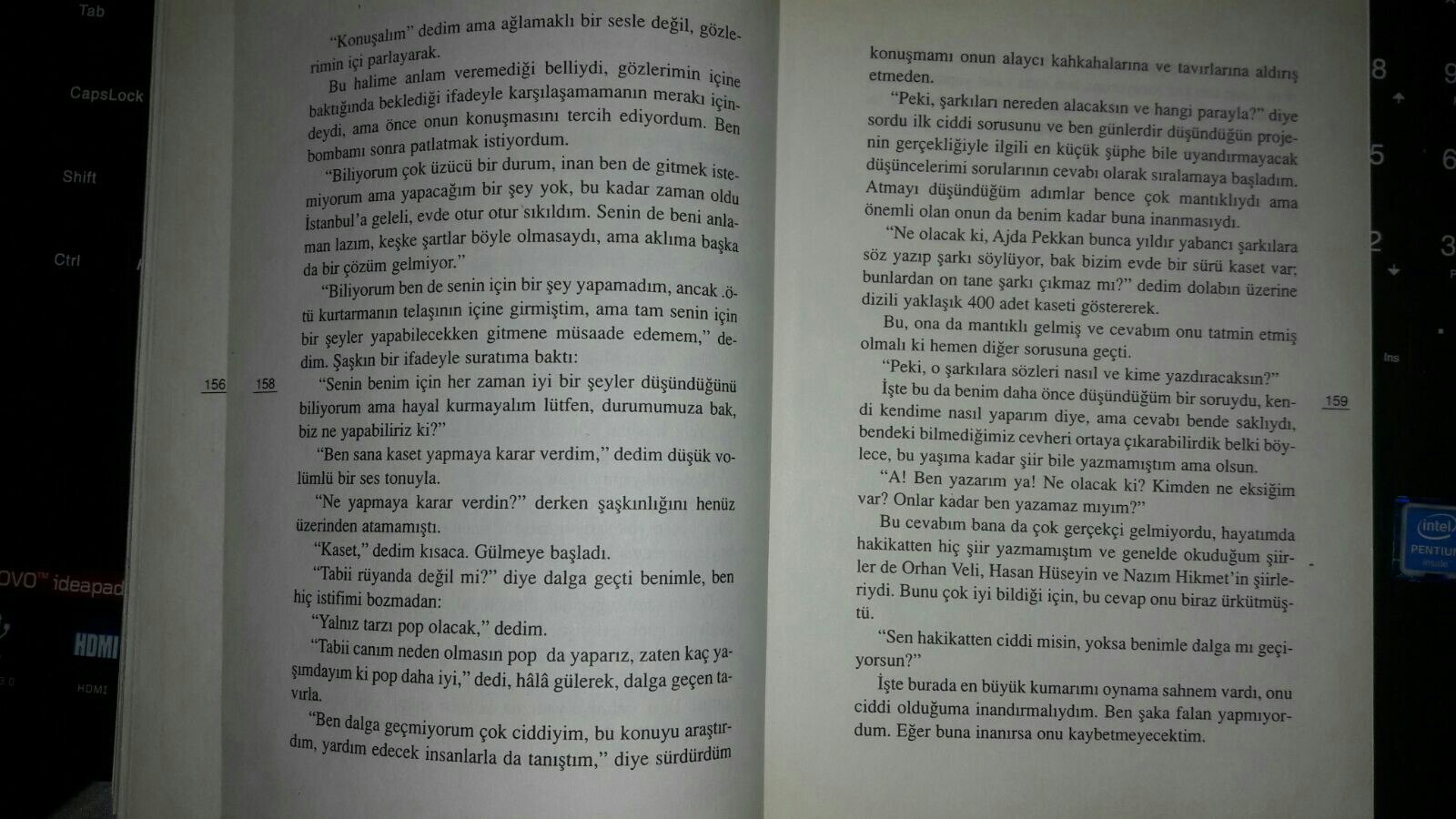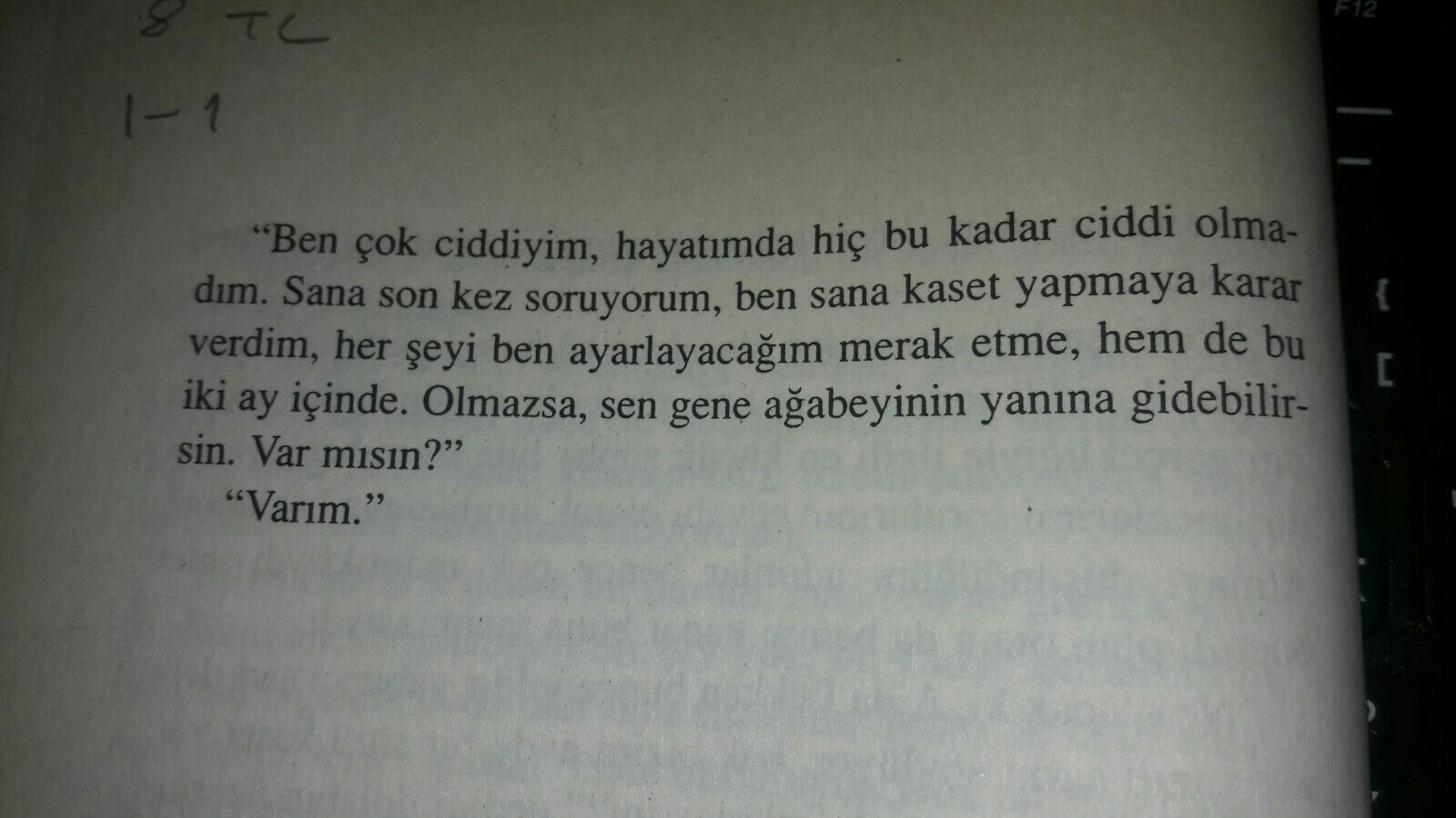 От меня никто никогда не уходил,- всё время уходила я. Так получалось. И мне всегда казалось, что, если другой человек захочет уйти первым, - это его право, и я переживу. И как-то я рассказывала Гале про что-то такое, а она сказала "я даже не хочу думать о том, что пережили те, кому пришлось тебя потерять". Это про любого можно сказать, само собой. Но я тогда подумала, что я тоже "не хочу думать". Ateş düştüğü yeri yakar, я понимаю, но вот путь и yaksın, я смотреть на это - не буду,- думала я... А тут - книга того, кому пришлось потерять. От первого лица. И по титулу, да и по факту существования книги вообще, кажется, что он мстит... А он, кстати, жестокий, когда ему надо, - он это прекрасно донёс в тексте... НО... По тексту - он любит. Даже по такому тексту..., в котором вообще нет описаний, нет ни одного прилагательного даже для цвета, нет ни одного описания природы, неба, моря... Ничего вообще... Нет ни одного эпитета в адрес человека, которого он так любил. Единственный раз, когда за всю книжку появляется слово güzel, оно появляется в предложении "bu güzel gözler были наполнены ненавистью ко мне". Даже из такого текста - любовь реками хлещет. Да, ни одной похвалы, ни одной положительной оценки. Но и ни одного упрёка, ни одного плохого слова. Dili varmaz. Без красок, без сцены (без природы), без лиц, без эмоций, и даже без мыслей (мыслей нет вообще, все диалоги - на одну реплику) - всё это только кричит о том, что это - рассказ человека, опустошенного... своей же любовью. А это - глубокая мысль. И я уверена - у Алпая так получилось случайно,- он по-другому просто не смог бы,- но именно поэтому это получилось виртуозно. Как Sarıl Bana. Случайно, но виртуозно... А я всегда и говорила, что я верю в Сарыл Бану,- она у меня всё еще на первом месте в рейтинге, потому что "настоящая".