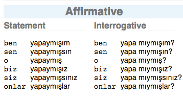 Не знаю, с какой стороны начинать рассказывать. Я такое не употребляю, и никто у нас за всю историю блога такое не спел/не сказал. Я больше скажу: сами турки таким нечасто балуются. НО... Я тут подумала: а чего-такого? Если мало кто употребляет, - значит, нам это точно надо, а то давно новой грамматики не было. Поэтому морально приготовьтесь...
