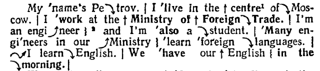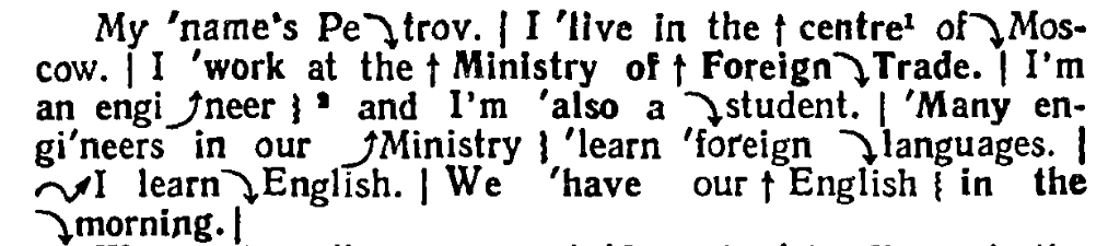 Еще есть такие⤴ стрелочки, где интонация вверх идет. В турецком у нас такое будет. Еще вот такой ↑ стрелочкой показано, какие слова надо выделить смысловым ударением. Отчеканить, то есть. И апострофами - ударный слог кое-где, я так поняла.
