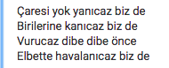 Заценили все yanıcaz/kanıcaz/vurucaz/havalanıcaz, да? Это я к чему... Ну дураку понятно, что вы всё это уже давно подобрали на слух, когда их слушали/смотрели. Понятно, что никого не шокирует. Şok edici bir şey değil. А почему тогда, когда транскрипт его делаете, то визгов-то, визгов... "Он не те звуки произносит, что по грамматике положены. Подлец!" Ну мало ли?!!! Жизнь полна сюрпризов. А зато он живой. В смысле, к немцам сходите, там всё "по грамматике" произносят. Но это когда-то сделанная запись для образовательных целей, и ничего нового не предвидится. Это мёртвый материал, как учебник. А он - дышит. И столько болтает, что я в последнее время не успеваю за всеми его "речами". Собираю "yarınlara"... Вот вчера опять... "Высказался" на тему браков несовершеннолетних. Ну блин, я там половины слов не знаю (яяяяяя!). Откуда берет всё время новую и новую лексику?... В смысле, я очень радуюсь, когда что-то незнакомое "науке" вижу. Rahatsız edici bir durum değil yani. Çok seviniyorum böyle anlarda. Но лично мне сгрести и выучить все его новые термины - вопрос десяти минут. А объяснить это вам и заставить вас запомнить - это часы, дни, недели, месяцы даже. Поэтому прибавьте газу.