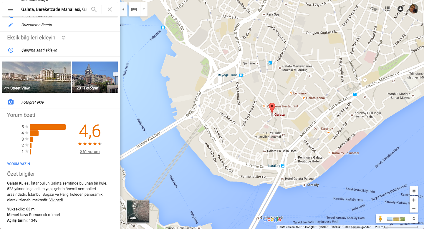 Когда я шел утром на работу, как всегда спозаранку, когда меня съедали углекислый газ, угарный газ и дорожное движение, говоря "кто-то пешеход на тротуаре, а кто-то едет на машине,- монотонность, мегамонность", я добрался до Галаты... Чего это такое? Это район Стамбула такой, и там у них башня в стиле римской архитектуры, с панорамными видами,- пишет Гугл. Сходите в Google maps. Там по улицам погулять можно. Я походила-испугалась. Стрёмный райончик, по-моему.