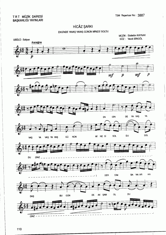 Ну и вот... Мне песня по определению понравилась, поэтому я разбежалась ее спеть... с места в карьер, ama... Bunu söylemek dile kolay. А вот хотя бы (блин) мелодию запомнить - это уже намного сложнее. Она же совсем не запоминающаяся там. За ним я спеть нормально с трех попыток не смогла - в такт не попадала. Поэтому решила, что мне нужна хоть какая-нибудь шпаргалка, и сходила-притащила партитуру. Там хотя бы видно, что, когда и куда, - сразу намного легче стало.