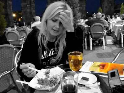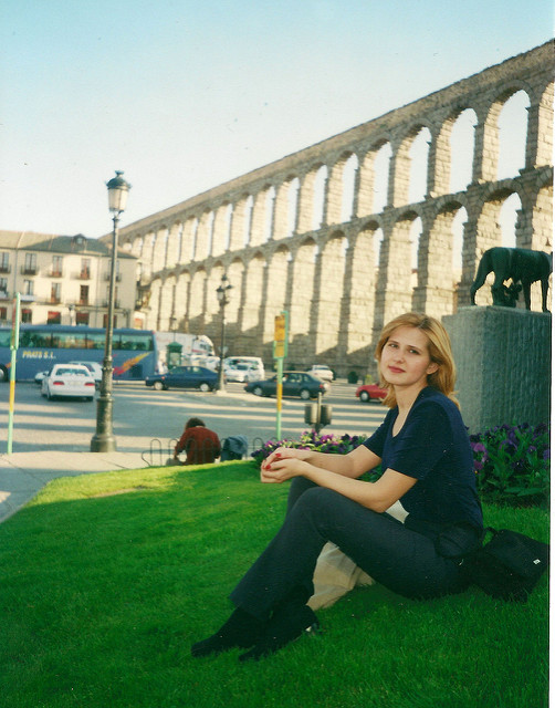 Туда многие, кстати, ездят обедать,- там традиционное блюдо - поросенок (с яблоком во рту). Другой еды во всем городе нет. А турки свинину не едят, поэтому не совсем понятно, чего ты там забыл... Допустим, платье свадебное примерять приезжали... НО... Это мой акведукт! Я его первая увидела! Кто разрешал нарушать государственные границы моей территории? Что за безобразие?! Больше так не делай! Иди к себе в Турцию! Не надо ходить по моей земле и дышать моим воздухом... без спросу... Так, а вот этот мужик без кепки - это что, турок? Не может такого быть. В Испании турков - как в Нижневартовске австралийцев. То есть, нет. Посольские работники не считаются. Я еще вычислила директора турецких авиалиний в Мадриде, но больше - ни души. Меньше одного на миллион, то есть. Редкий товар. Настолько редкий, что я, сколько ни искала, ни одного не встретила. Пока будем считать, это какой-то друг твой, ты его с собой привозил... Потому что, если это не так, то... срочно познакомь меня с ним, а? Очень надо. Мне для образовательных целей. У тебя своя жена есть, а у меня своего турка нет, - это же вселенская несправедливость просто какая-то, согласись. А мы с ним будем там по субботам обедать, я его свинину есть научу... да у меня вообще большие планы на него, мужику "повезло" крупно. Он будет мне что-то по-турецки говорить, с вашим волшебным акцентом... Я заранее счастлива... Только быстрей давай, а то у меня времени - только до 1001 урока, сам знаешь. Потом я исчезну.