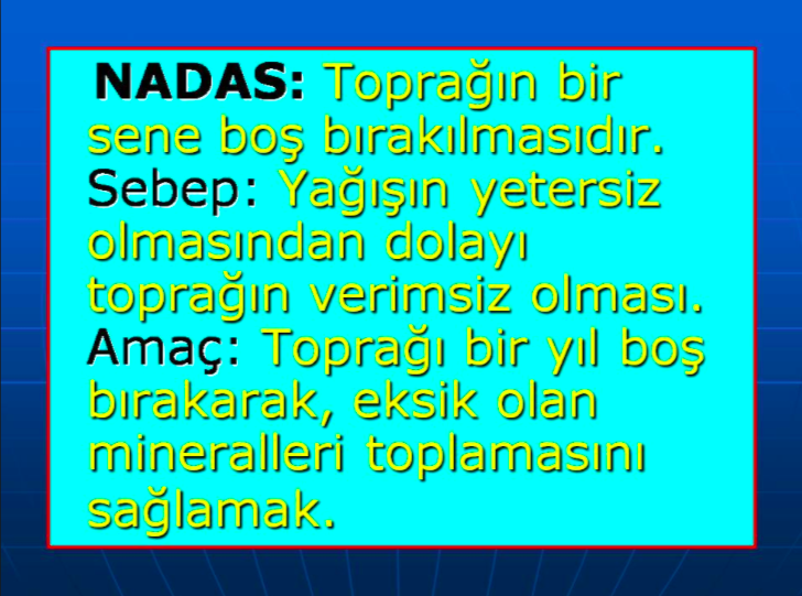 Это из презентации какой-то картинка. У меня на нее смотреть глаза болят. Но мы на ней все слова знаем. И... я забыла про пар и про всё остальное, когда увидела первое предложение тут... Решила, давайте обсудим... Тут написано что? Оставляемость земли незасеянной один год. Toprağın bir sene boş bırakılması. Оставляемость - в возвратной форме (=в страдательном залоге тут). Как сказать "оставление земли незасеянной один год"?... Добровольцы есть? Мышку кто-нибудь взметнул?... Ну?... Toprağı bir sene boş bırakma(k)... Думаю я... Потому что было немало прецедентов... Хоть я и не заостряла на них внимание... А надо было... А почему надо было? А потому что по-русски мы обычно второй вариант употребляем. От активного действия отталкиваемся, то есть.