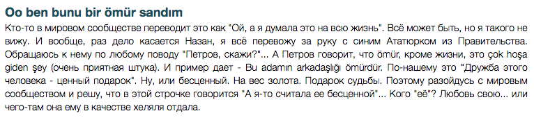 Sen bir ömür - чего я там про бальзам на раны написала в переводе? Ну, я вспомнила Назановский перевод песни Стаса Михайлова из 269 урока. Песня называлась Senden kıymetli mi. Дам вам кусок из урока: