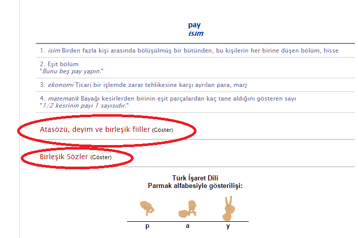 Раскрываете поговорки - видите payına düşmek в списке. Говорите ему "привет", кликаете, - и получаете подробные объяснения правительства.