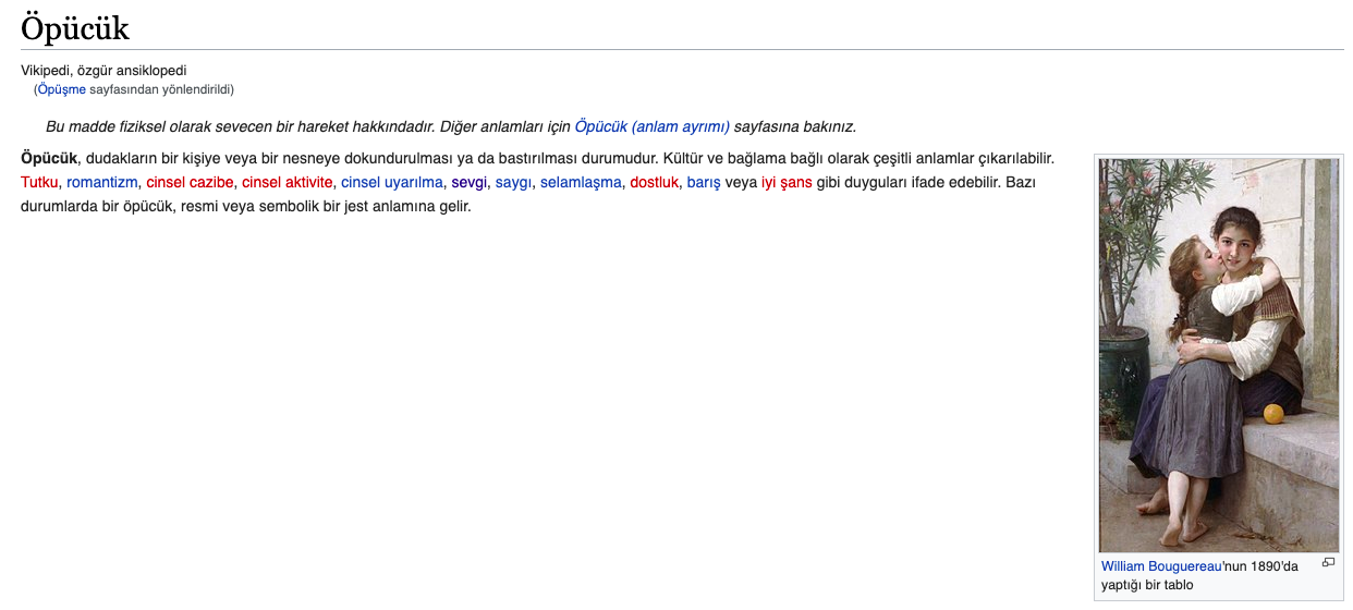 И чуть не забыла "длинную-предлинную" статью про поцелуй из турецкой Википедии