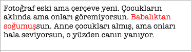 Ответ... Неправильно перевели (пока даже не знаю, мы или они). В английском там - отец, который ушел/который отдалился. САМ. Больше не близок. Турки выбрали слово - "охладевший к отцовству". Не знаю, насколько такая трактовка верна,- он же, вон как о благосостоянии детей заботится. Я бы "разлученный" тут поставила. Но они - так не сделали, и я хочу только, чтобы вы четко понимали, что soğumuş это НЕ "разлученный", договорились? Даже если по сценарию не очень вяжется, у них тут написано "отец, не испытывающий близости к детям". Остывший. Прям в буквальном смысле soğumuş.