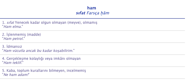 Сырой/неспелый, это понятно. А что "вам понравится"?... Пятое значение. Хам. Поняли, откуда мы наше русское слово взяли?... А ведь никто не знает (мне кажется)... Аж приятно...
