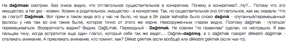 А зато время есть покрасить волосы. Нам - "настоящим" блондинкам - надо регулярно корни подкрашивать... Как корни?... У деревьев - ağaç kökleri. А у волос?... Правильно, saç kökleri. А красить как? Правильно, boyamak. Откуда знаем такие подробности? Из длинной-предлинной (кстати) песни Kayıp. Hazin bir siyaha boyandı bulutlar. Я еще тогдаааа нужной лексики на эту тему набралась... А kökleri откуда знаем?... Ну?... Тоже ТТ научил (подсказываю)... Нууууу?.... Göklerden gelen su... karada yaşayan bütün canlılara... köklerinin denizde yattığını hatırlatıyor. Это из Крабов, я все Гёчлеры наизусть знаю. Видите, как это важно? Никогда не знаешь, где пригодится... Посидите 10 минут, короче, клип посмотрите, потом расскажете, чего там.