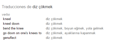 Кто английского особо не знает, всё что слева, - это преклонить колено, кроме вон того длинного,- оно значит упасть на колени. Направо смотрите. Шею склонять уже видели, пропускаем (где видели? Две песни у нас с этим были, хочу строчки - задание 6... Подсказывать надо? В одной он на машине гонял без ремня, а в другой с моделью в джакузи тусил). Вот! yola gelmek. Это прям ценная находка. Ни за что бы ведь сама не догадалась. У нас вот именно в таком виде это дело еще не проскакивало, но наверняка скоро где-нибудь наткнемся. А я тогда гордо ткну пальцем в термин и скажу: "еще в... каком там... в сто десятом уроке я ненавязчиво привлекала ваше внимание к этому выражению"... Заранее торжествую... Так, ладно, ayaklarına kapanmak это из Kuzu Kuzu, только он там не к ногам припадал, а к коленям, да? А я тогда этого слова не знала, но методом дедукции от "закрыть", руками вывела, помнится. Строчку наизусть помните? (7). Diz çökmek как запомнить слета? Коленями çökнуться (о землю, допустим).